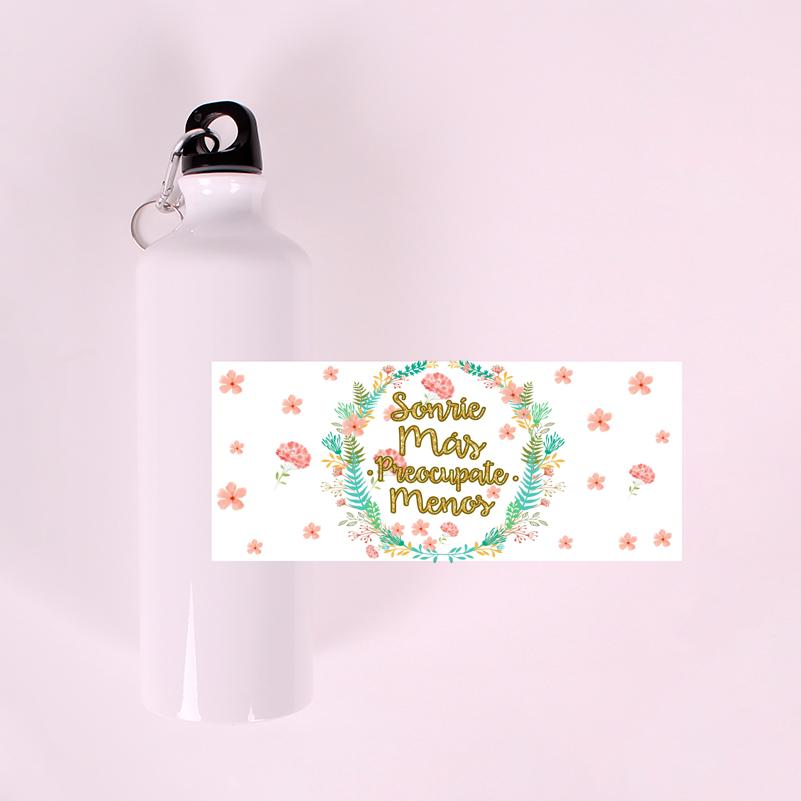 Botella Frase Sonrie Mas Preocupate Menos