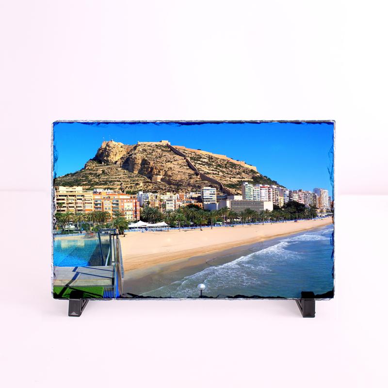 El material del portafotos es de piedra pizarra.