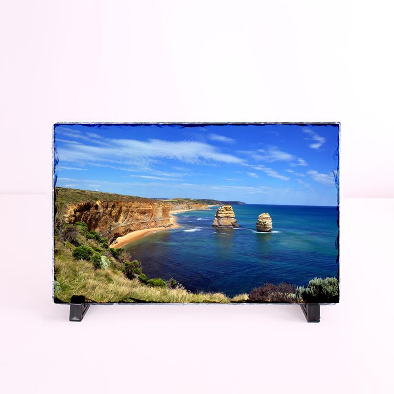 El material del portafotos es de piedra pizarra.
